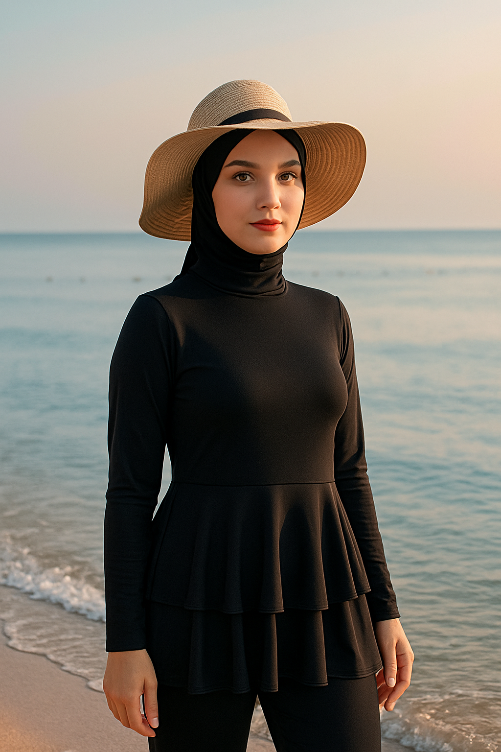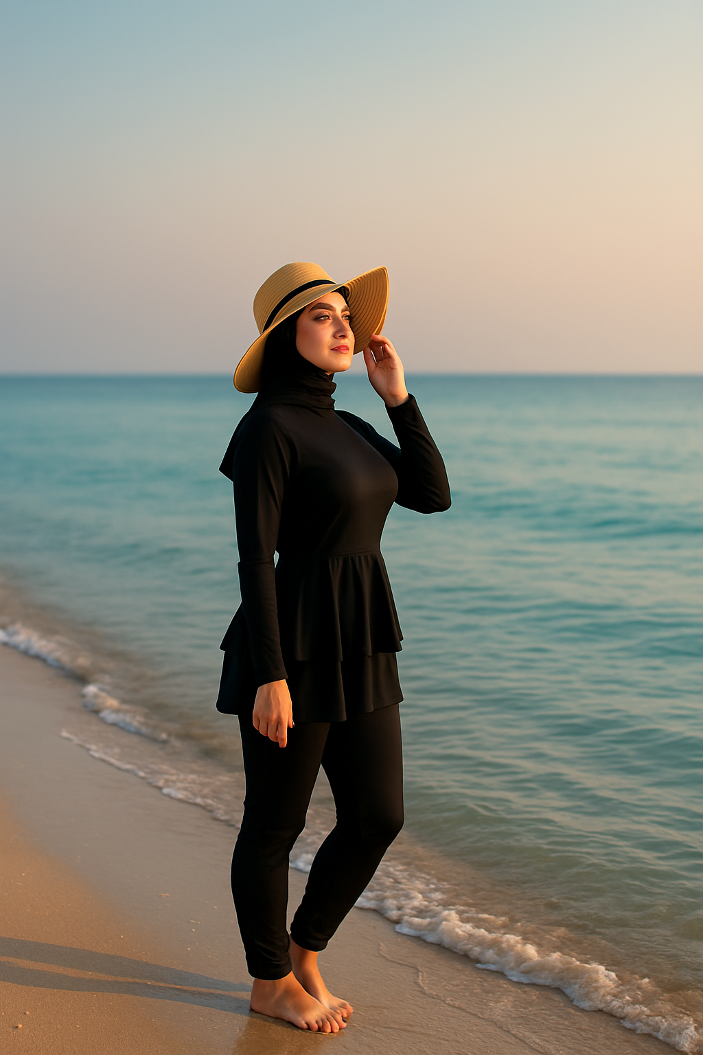 صُمم هذا البوركيني خصيصًا للمرأة التي تبحث عن التوازن بين الحشمة والأناقة. تغطية مثالية مع تصميم عصري يمنحك حرية الحركة والثقة الكاملة في كل خروجة إلى البحر أو المسبح.