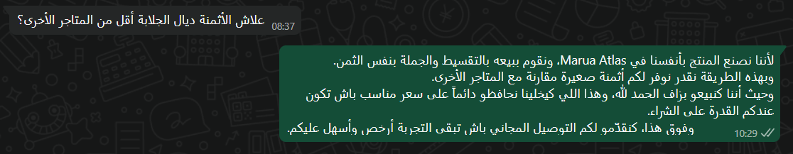 عند أي سؤال أو استفسار، تواصلي معنا عبر واتساب وسنساعدك بكل سرور 🤍
